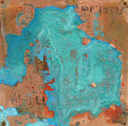 (copper, sea salt, vinegar, acrylics, transferred image)
