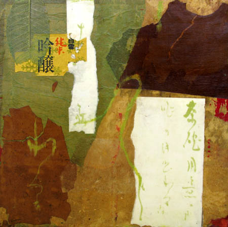 (paper, tea bag, acrylic, water-soluble wax pastel)