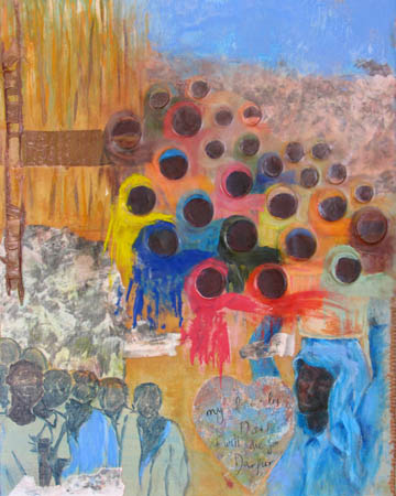 (canvas, paper, wood chips, acrylics, ink, rattan, encaustic)