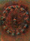 CIRCLE OF FIRE encaustic mixed media on cradle panel 12" x 9" |