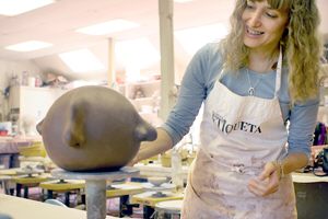 During my years at Albertus Magnus College, I learned to make spheres in ceramic class. My professor, Jerome Nevins, taught us to work in a minimalist approach, hence our first assignment in his class was to make a sphere, perfectly round and from that form we had to turn it into a base, or a pitcher… any utilitarian object we wanted.
